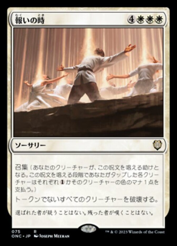 | Rules | Convoke (Your creatures can help cast this spell. Each creature you tap while casting this spell pays for or one mana of that creature's color.) Destroy all nontoken creatures. |