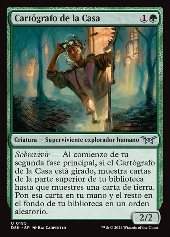 | Rules | Survival — At the beginning of your second main phase, if House Cartographer is tapped, reveal cards from the top of your library until you reveal a land card. Put that card into your hand and the rest on the bottom of your library in a random order. |