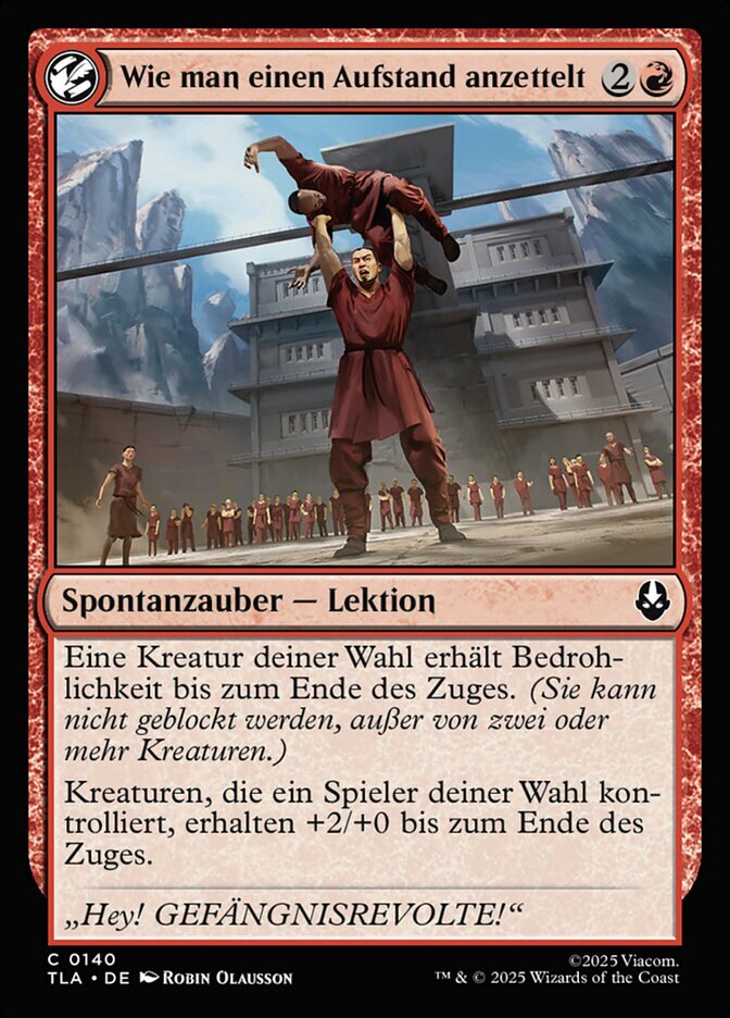 | Rules | Target creature gains menace until end of turn. (It can't be blocked except by two or more creatures.) Creatures target player controls get +2/+0 until end of turn. |