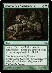 | Rules | Create a 2/2 green Wolf creature token for each Forest you control. |