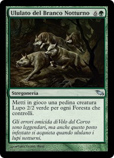 | Rules | Create a 2/2 green Wolf creature token for each Forest you control. |