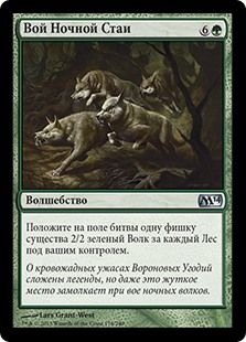 | Rules | Create a 2/2 green Wolf creature token for each Forest you control. |