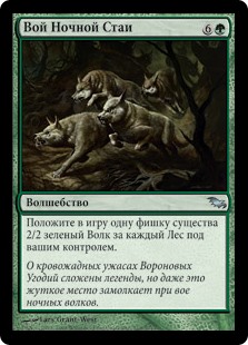 | Rules | Create a 2/2 green Wolf creature token for each Forest you control. |