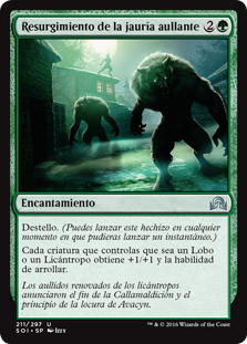 | Rules | Flash (You may cast this spell any time you could cast an instant.) Each creature you control that's a Wolf or a Werewolf gets +1/+1 and has trample. |