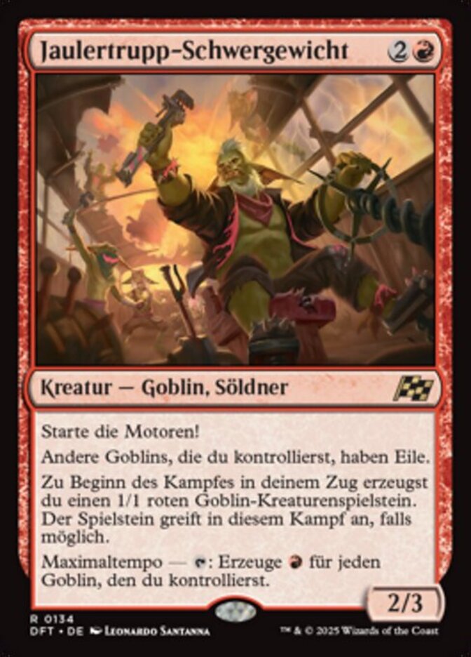 | Rules | Start your engines! Other Goblins you control have haste. At the beginning of combat on your turn, create a 1/1 red Goblin creature token. That token attacks this combat if able. Max Speed — : Add for each Goblin you control. |