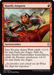 | Rules | Target creature gets +2/+0 until end of turn. If you control a Huatli planeswalker, that creature gets +4/+0 until end of turn instead. |
