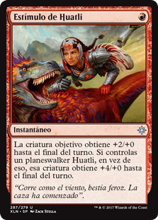 | Rules | Target creature gets +2/+0 until end of turn. If you control a Huatli planeswalker, that creature gets +4/+0 until end of turn instead. |