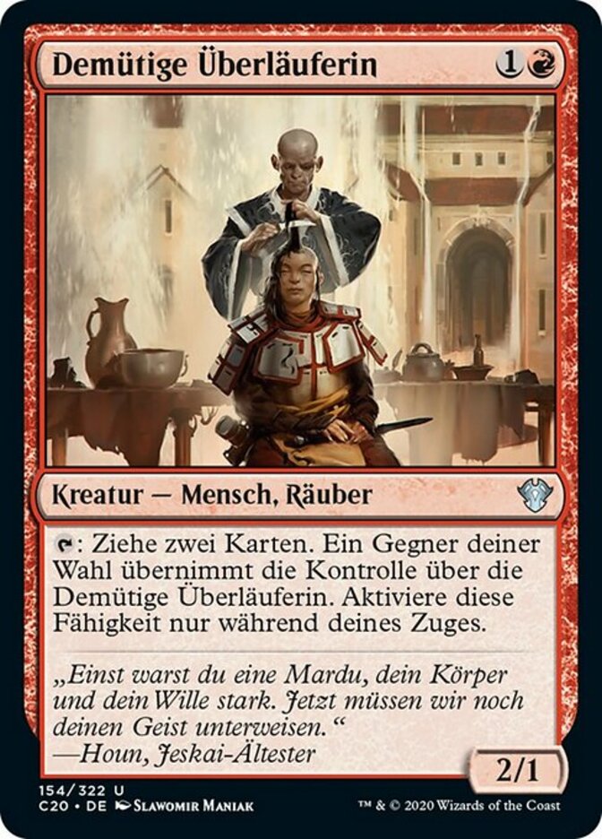 Rules : Draw two cards. Target opponent gains control of Humble Defector. Activate only during your turn.