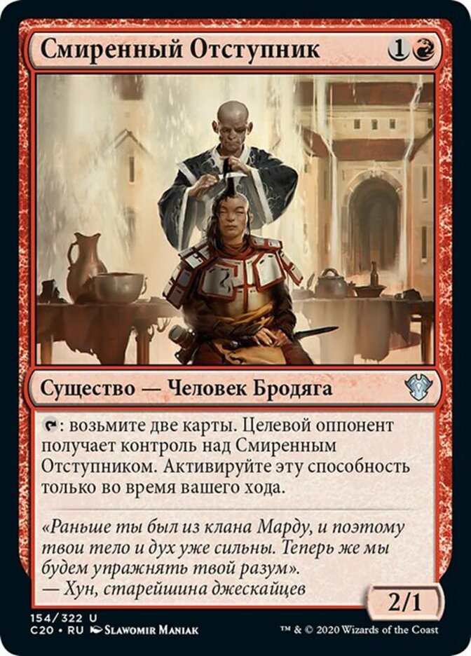 | Rules | : Draw two cards. Target opponent gains control of Humble Defector. Activate only during your turn. |