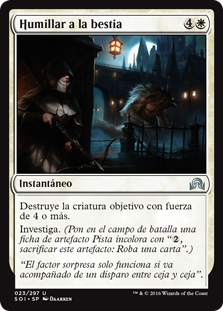 | Rules | Destroy target creature with power 4 or greater. Investigate. (Create a colorless Clue artifact token with ", Sacrifice this artifact: Draw a card.") |