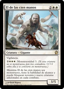 | Rules | Vigilance : Monstrosity 3. (If this creature isn't monstrous, put three +1/+1 counters on it and it becomes monstrous.) As long as Hundred-Handed One is monstrous, it has reach and can block an additional ninety-nine creatures each combat. |