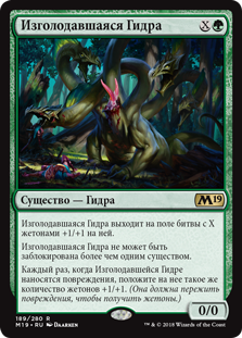 | Rules | Hungering Hydra enters the battlefield with X +1/+1 counters on it. Hungering Hydra can't be blocked by more than one creature. Whenever Hungering Hydra is dealt damage, put that many +1/+1 counters on it. (It must survive the damage to get the counters.) |