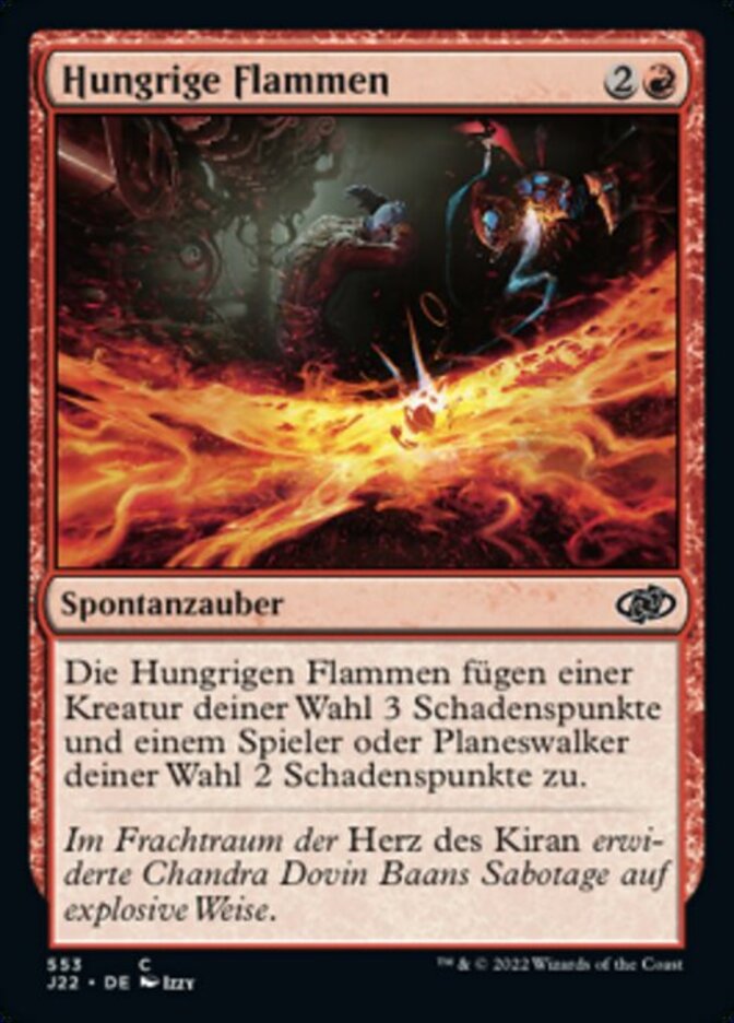 | Rules | Hungry Flames deals 3 damage to target creature and 2 damage to target player or planeswalker. |