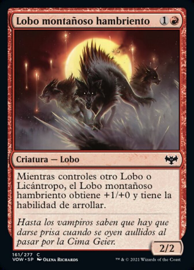 | Rules | As long as you control another Wolf or Werewolf, Hungry Ridgewolf gets +1/+0 and has trample. |