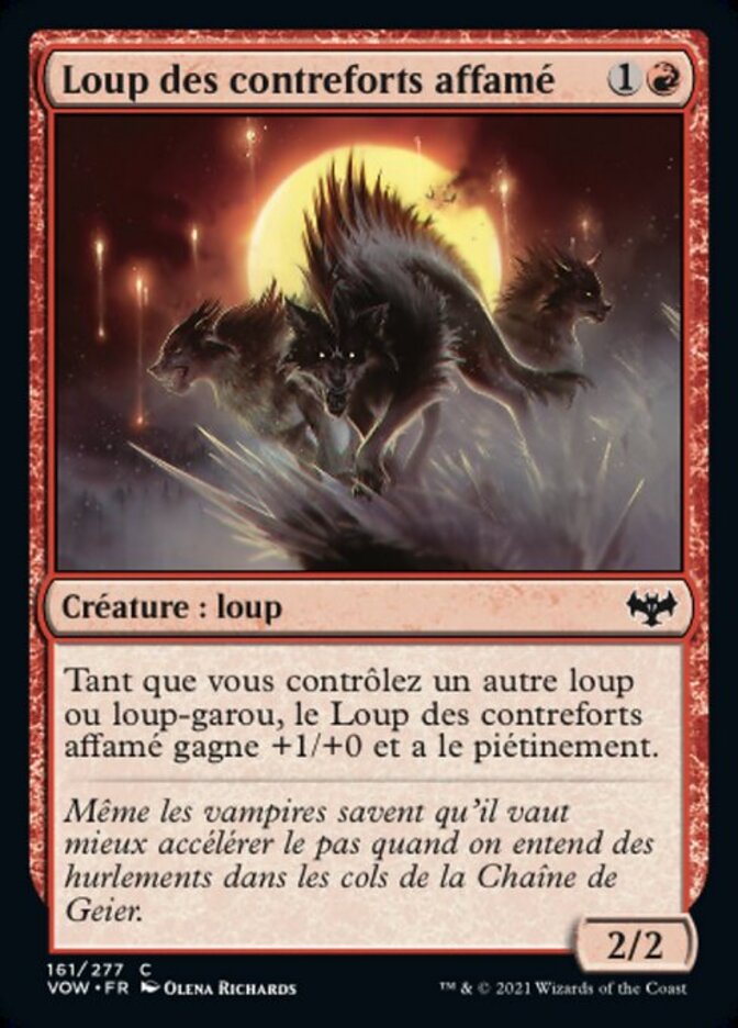 | Rules | As long as you control another Wolf or Werewolf, Hungry Ridgewolf gets +1/+0 and has trample. |