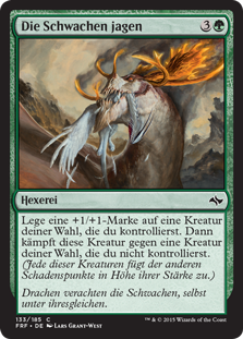 | Rules | Put a +1/+1 counter on target creature you control. Then that creature fights target creature you don't control. (Each deals damage equal to its power to the other.) |