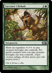 | Rules | Put a +1/+1 counter on target creature you control. Then that creature fights target creature you don't control. (Each deals damage equal to its power to the other.) |