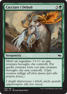| Rules | Put a +1/+1 counter on target creature you control. Then that creature fights target creature you don't control. (Each deals damage equal to its power to the other.) |