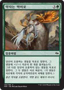 | Rules | Put a +1/+1 counter on target creature you control. Then that creature fights target creature you don't control. (Each deals damage equal to its power to the other.) |