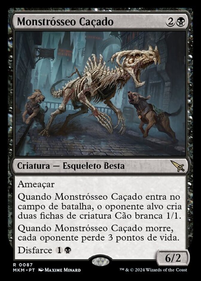 | Rules | Menace When Hunted Bonebrute enters the battlefield, target opponent creates two 1/1 white Dog creature tokens. When Hunted Bonebrute dies, each opponent loses 3 life. Disguise |