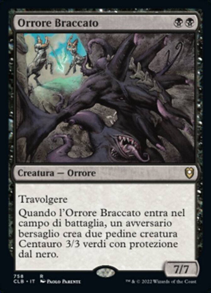 | Rules | Trample When Hunted Horror enters the battlefield, target opponent creates two 3/3 green Centaur creature tokens with protection from black. |