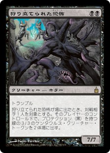 | Rules | Trample When Hunted Horror enters the battlefield, target opponent creates two 3/3 green Centaur creature tokens with protection from black. |