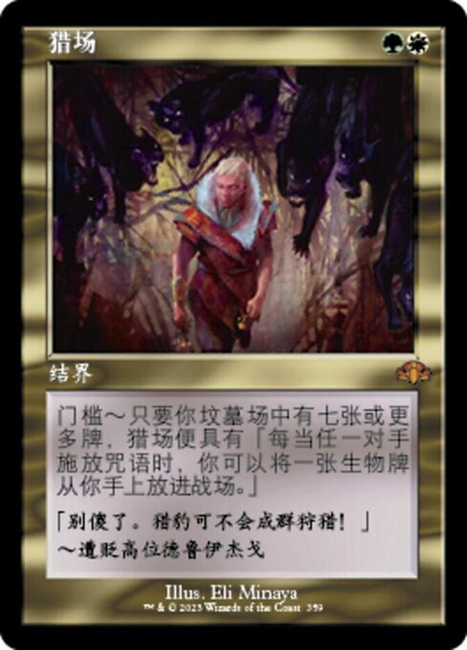 | Rules | Threshold — As long as seven or more cards are in your graveyard, Hunting Grounds has "Whenever an opponent casts a spell, you may put a creature card from your hand onto the battlefield." |