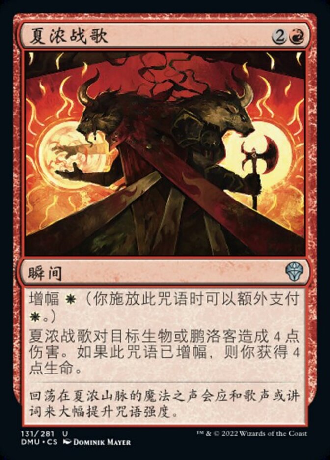 | Rules | Kicker (You may pay an additional as you cast this spell.) Hurloon Battle Hymn deals 4 damage to target creature or planeswalker. If this spell was kicked, you gain 4 life. |