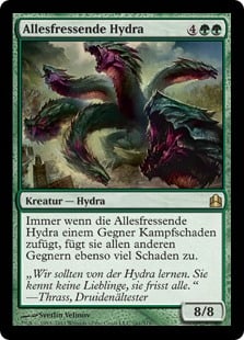 | Rules | Whenever Hydra Omnivore deals combat damage to an opponent, it deals that much damage to each other opponent. |