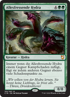 | Rules | Whenever Hydra Omnivore deals combat damage to an opponent, it deals that much damage to each other opponent. |