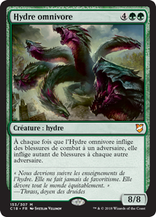 | Rules | Whenever Hydra Omnivore deals combat damage to an opponent, it deals that much damage to each other opponent. |