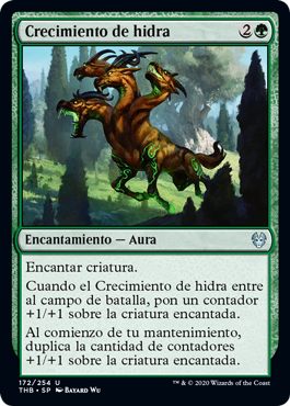| Rules | Enchant creature When Hydra's Growth enters the battlefield, put a +1/+1 counter on enchanted creature. At the beginning of your upkeep, double the number of +1/+1 counters on enchanted creature. |