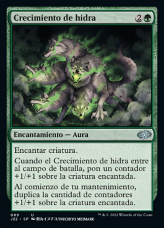 | Rules | Enchant creature When Hydra's Growth enters the battlefield, put a +1/+1 counter on enchanted creature. At the beginning of your upkeep, double the number of +1/+1 counters on enchanted creature. |