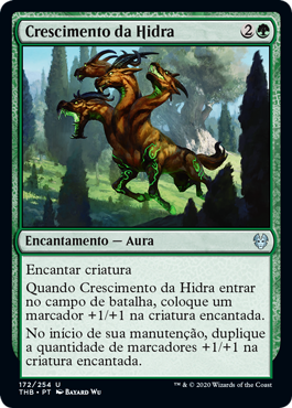| Rules | Enchant creature When Hydra's Growth enters the battlefield, put a +1/+1 counter on enchanted creature. At the beginning of your upkeep, double the number of +1/+1 counters on enchanted creature. |