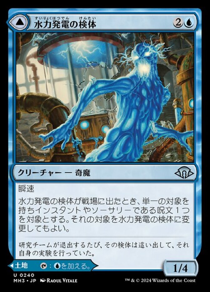 | Rules | Flash When Hydroelectric Specimen enters the battlefield, you may change the target of target instant or sorcery spell with a single target to Hydroelectric Specimen. // As Hydroelectric Laboratory enters the battlefield, you may pay 3 life. If you don't, it enters the battlefield tapped. : Add . |