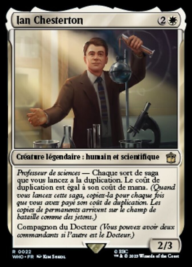 | Rules | Science Teacher — Each Saga spell you cast has replicate. The replicate cost is equal to its mana cost. (When you cast that Saga, copy it for each time you paid its replicate cost. Copies of permanents enter the battlefield as tokens.) Doctor's companion (You can have two commanders if the other is the Doctor.) |