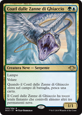 | Rules | Flash Flying When Ice-Fang Coatl enters the battlefield, draw a card. Ice-Fang Coatl has deathtouch as long as you control at least three other snow permanents. |