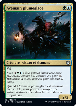 | Rules | Flying Morph (You may cast this card face down as a 2/2 creature for . Turn it face up any time for its morph cost.) When Icefeather Aven is turned face up, you may return another target creature to its owner's hand. |
