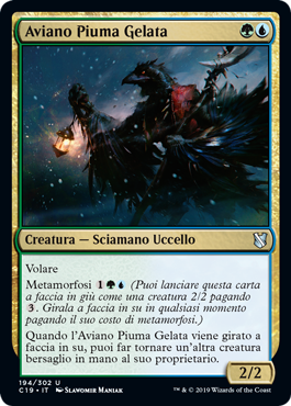 | Rules | Flying Morph (You may cast this card face down as a 2/2 creature for . Turn it face up any time for its morph cost.) When Icefeather Aven is turned face up, you may return another target creature to its owner's hand. |