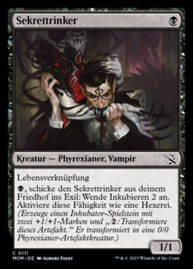| Rules | Lifelink , Exile Ichor Drinker from your graveyard: Incubate 2. Activate only as a sorcery. (Create an Incubator token with two +1/+1 counters on it and ": Transform this artifact." It transforms into a 0/0 Phyrexian artifact creature.) |
