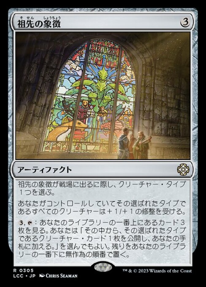 | Rules | As Icon of Ancestry enters the battlefield, choose a creature type. Creatures you control of the chosen type get +1/+1. , : Look at the top three cards of your library. You may reveal a creature card of the chosen type from among them and put it into your hand. Put the rest on the bottom of your library in a random order. |
