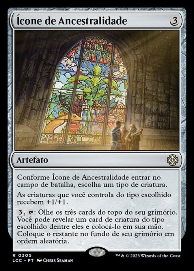| Rules | As Icon of Ancestry enters the battlefield, choose a creature type. Creatures you control of the chosen type get +1/+1. , : Look at the top three cards of your library. You may reveal a creature card of the chosen type from among them and put it into your hand. Put the rest on the bottom of your library in a random order. |