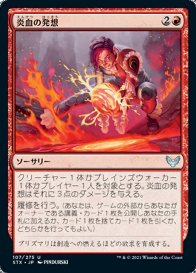 | Rules | Igneous Inspiration deals 3 damage to any target. Learn. (You may reveal a Lesson card you own from outside the game and put it into your hand, or discard a card to draw a card.) |