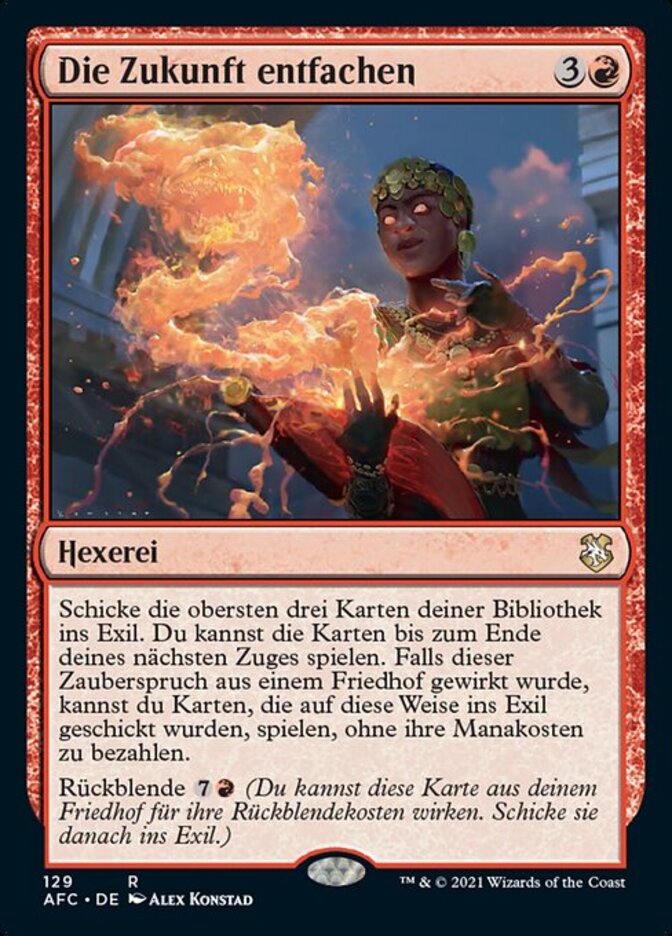 | Rules | Exile the top three cards of your library. Until the end of your next turn, you may play those cards. If this spell was cast from a graveyard, you may play cards this way without paying their mana costs. Flashback (You may cast this card from your graveyard for its flashback cost. Then exile it.) |