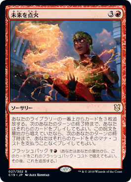 | Rules | Exile the top three cards of your library. Until the end of your next turn, you may play those cards. If this spell was cast from a graveyard, you may play cards this way without paying their mana costs. Flashback (You may cast this card from your graveyard for its flashback cost. Then exile it.) |