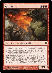 | Rules | Ignition Team enters the battlefield with X +1/+1 counters on it, where X is the number of tapped lands on the battlefield. , Remove a +1/+1 counter from Ignition Team: Target land becomes a 4/4 red Elemental creature until end of turn. It's still a land. |