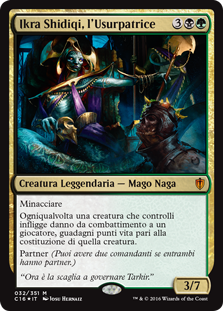 | Rules | Menace Whenever a creature you control deals combat damage to a player, you gain life equal to that creature's toughness. Partner (You can have two commanders if both have partner.) |