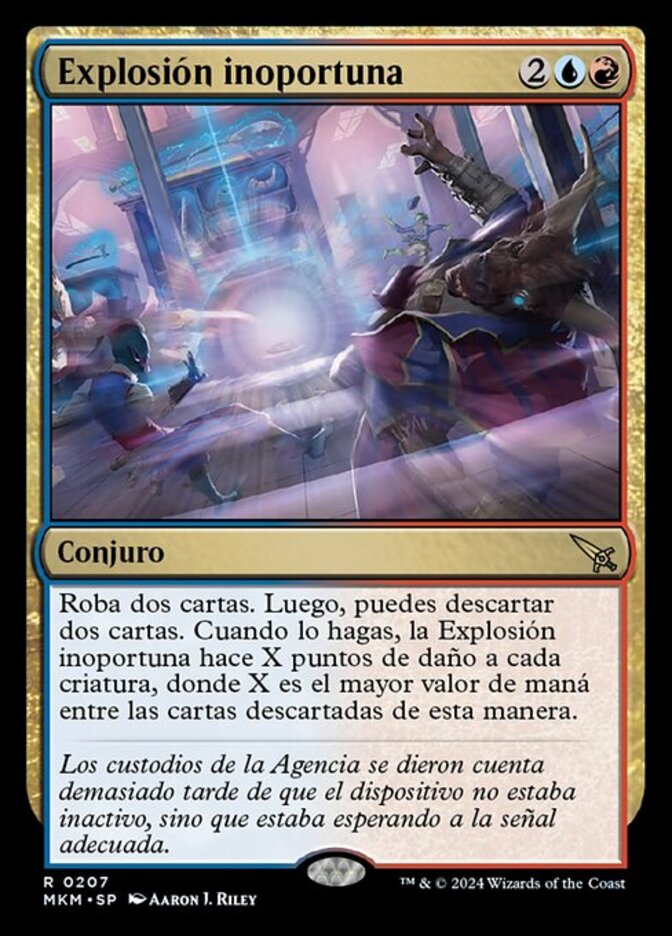 | Rules | Draw two cards. Then you may discard two cards. When you do, Ill-Timed Explosion deals X damage to each creature, where X is the greatest mana value among cards discarded this way. |