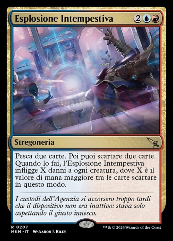 | Rules | Draw two cards. Then you may discard two cards. When you do, Ill-Timed Explosion deals X damage to each creature, where X is the greatest mana value among cards discarded this way. |