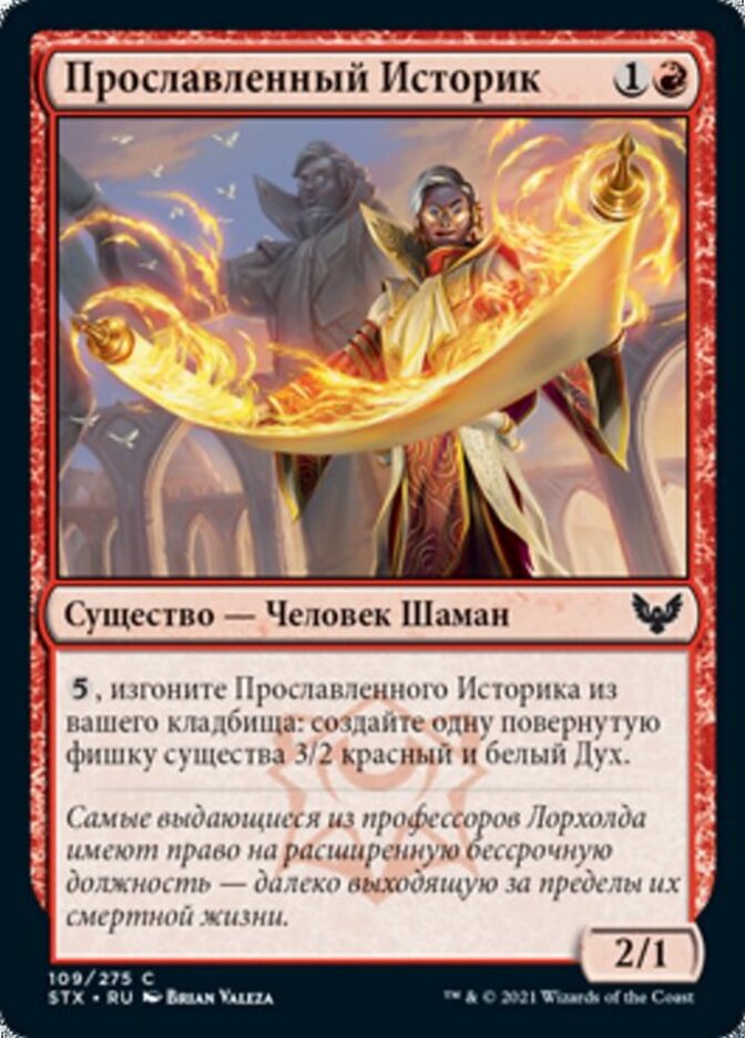 | Rules | , Exile Illustrious Historian from your graveyard: Create a tapped 3/2 red and white Spirit creature token. |